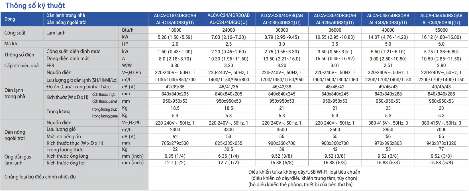 Điều hòa âm trần AUX INVERTER 4HP ALCA-C36/4DR3QAB