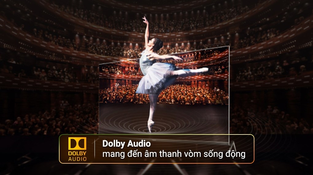 - Tivi Aqua 4K trang bị công nghệ âm thanh Dolby Audio, bạn có thể thưởng thức âm thanh vòm 360 độ với độ chân thực ấn tượng cho mọi thể loại phim. Ngoài ra, tivi còn hỗ trợ công nghệ dbx-tv giúp khắc phục sự mất cân bằng âm sắc, tăng hoặc giảm dải tần số để hạn chế các phần âm thanh không mong muốn.