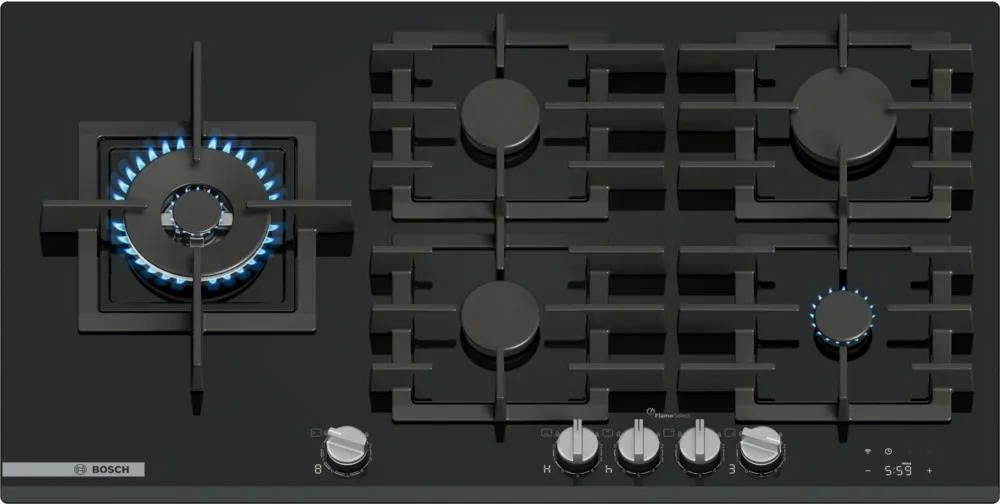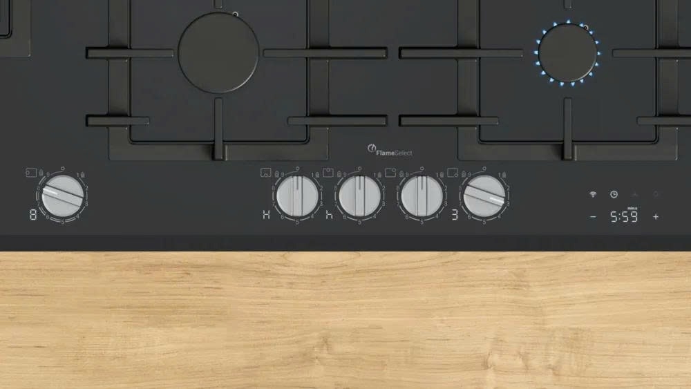 Bếp gas Bosch PRS9A6H40 Series 8 - 5 vùng nấu, kết nối thông minh qua Home Connect, đầu đốt công suất kép linh hoạt, màn hình kỹ thuật số hiện đại và núm vặn phát sáng dễ vệ sinh. Thiết kế đỉnh cao, thao tác mượt mà – nâng tầm trải nghiệm nấu ăn mỗi ngày!