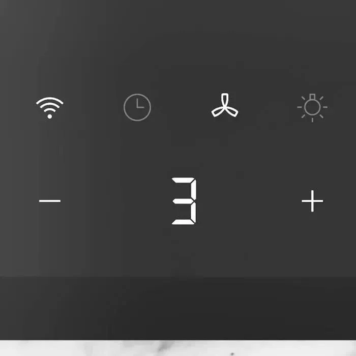 - Giao diện cảm ứng hiện đại kết hợp màn hình kỹ thuật số – chỉ cần một cú chạm nhẹ là bạn có thể hẹn giờ, điều chỉnh đèn hoặc quản lý máy hút mùi.