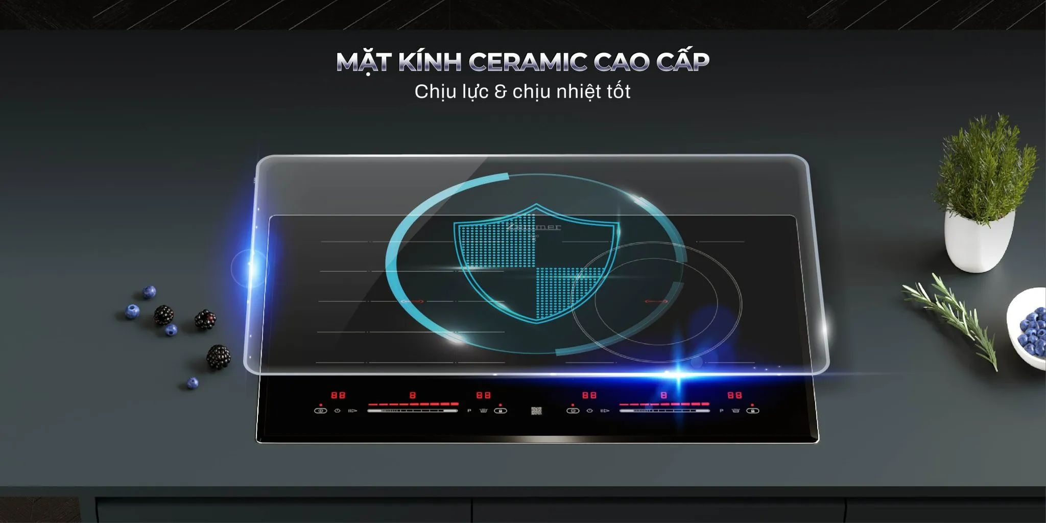 Bếp IZM 203IH được trang bị mặt kính Ceramic với các đặc tính vượt trội như chống xước hiệu quả, khả năng chống sốc nhiệt lên tới 750ºC cùng khả năng chịu lực cao.