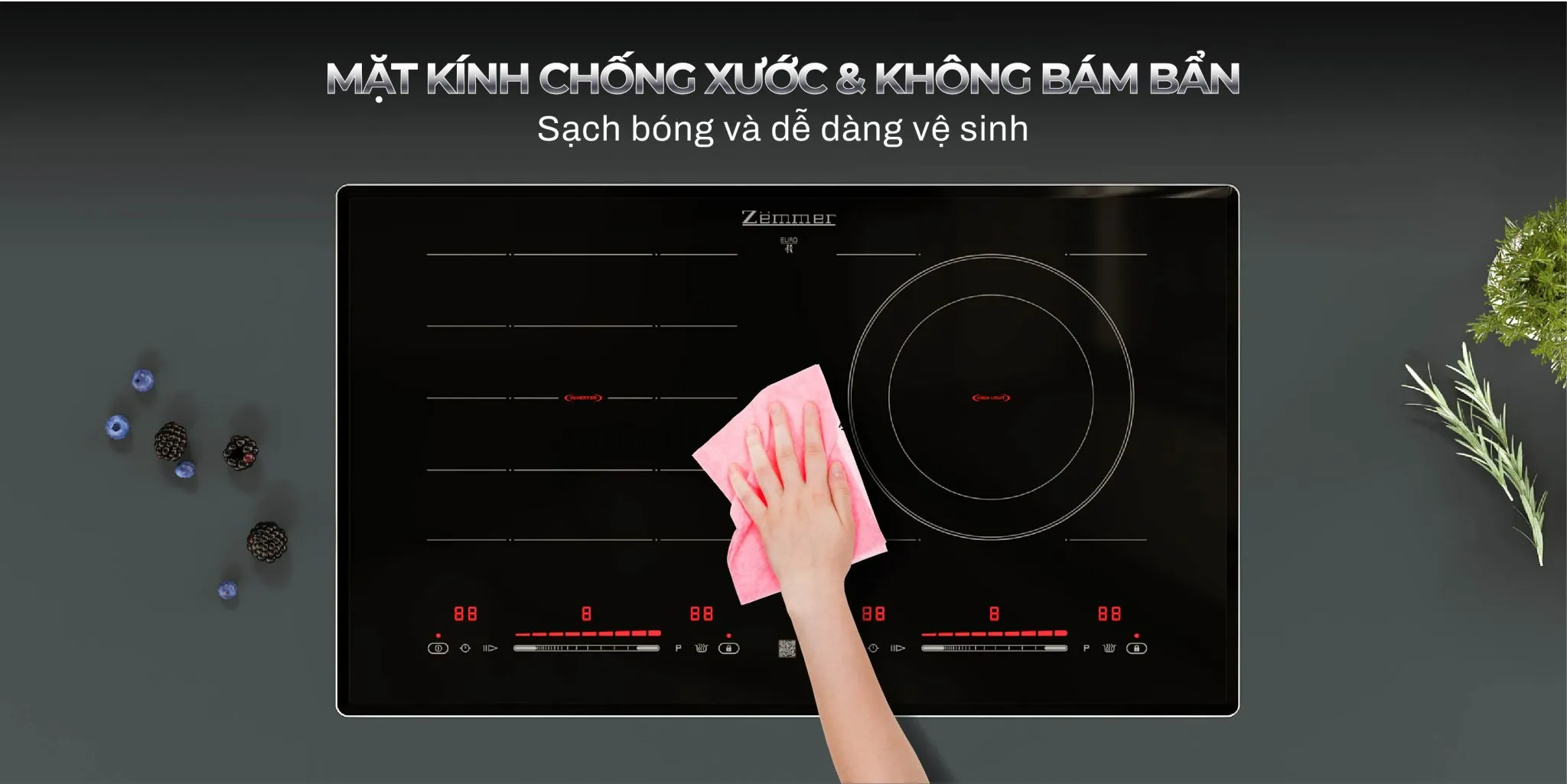 Khả năng khãng xước ưu việt, kết hợp với mặt kính sáng bóng giúp bạn dễ dàng vệ sinh. Mặt kính của bếp sẽ luôn sạch bóng như mới.