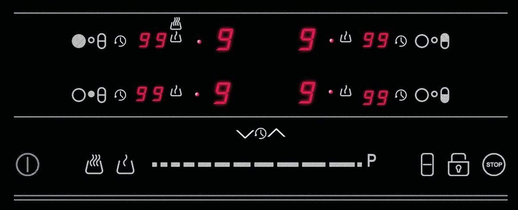 - Bộ điều chỉnh thời gian nấu bằng điện tử, độc lập cho từng bếp.