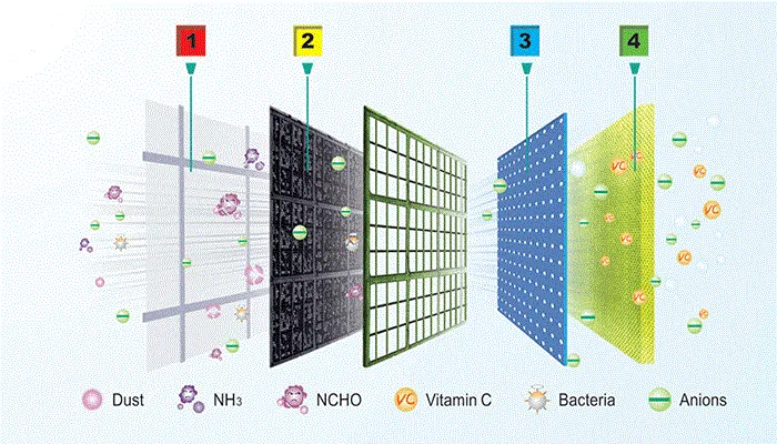 Điều hòa âm trần 48000btu Casper được trang bị bộ lọc khí Multi Filter giúp khử toàn bộ tác nhân gây hại cho sức khỏe như bụi bẩn, vi khuẩn, phấn hoa,… giúp diệt khuẩn, khử mùi hiệu quả nhờ vậy không khí trong phòng luôn trong lành, giúp bạn tận hưởng cuộc sống thoải mái nhất. Hệ thống lọc này được cấu tạo gồm nhiều lớp máy lọc: máy lọc Nano, máy lọc silver, Cacbon, Bio... hỗ trợ hoạt động lọc không khí hiệu quả hơn.