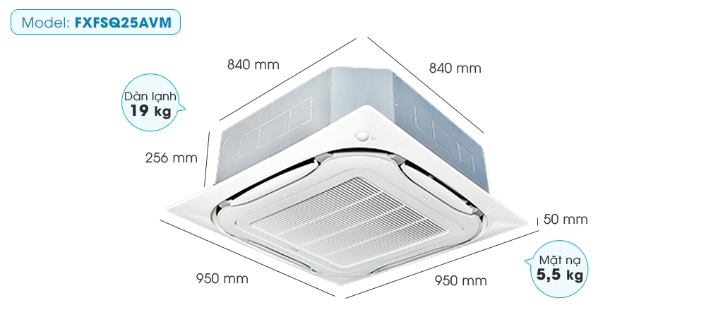 Dàn lạnh âm trần Daikin Inverter FXFSQ25AVM có công suất làm lạnh 2.8kW / 9,600BTU giúp máy hoạt mạnh mẽ và duy trì nhiệt độ ổn định, bảo đảm luồng gió lạnh dịu mát trong suốt quá trình vận hành.