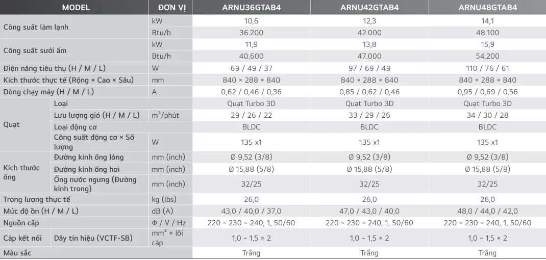 Dàn lạnh cassette 4 hướng thổi kép LG Multi V 5 ARNU36GTAB4