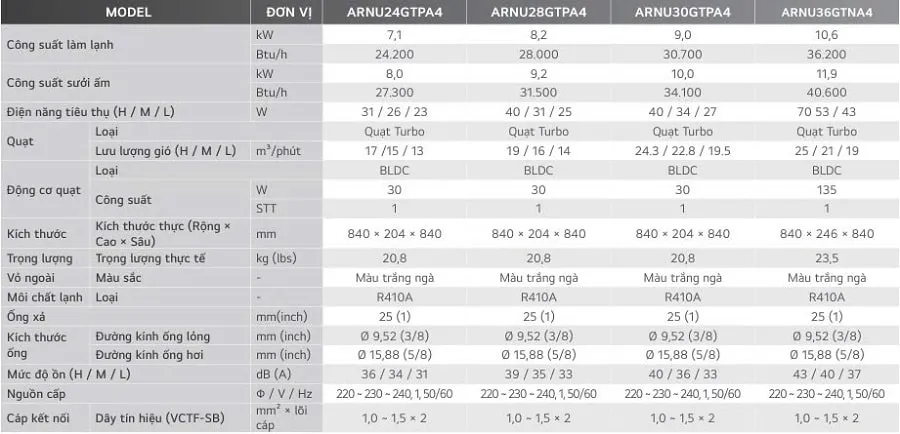 Dàn lạnh Cassette 4 hướng thổi Multi V 5 LG ARNU36GTNA4