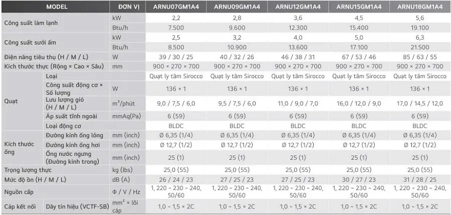 Dàn lạnh giấu trần nối ống gió LG Multi V 5 ARNU07GM1A4
