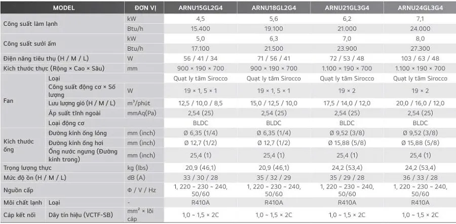 Dàn lạnh giấu trần nối ống gió LG Multi V 5 ARNU15GL2G4