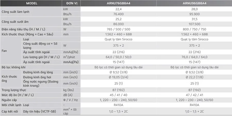 Dàn lạnh giấu trần nối ống gió LG Multi V 5 ARNU96GB8A4
