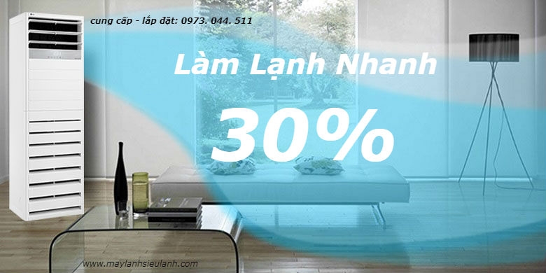 - Luồng gió thổi mạnh: Giúp máy hoạt động rất hiệu quả ở những khu vực rộng lớn nhờ công suất làm lạnh mạnh mẽ. Tốc độ và lưu lượng thổi gió mạnh mẽ, luồng gió có thể được thổi ra xa khỏi máy điều hòa không khí tới 20 m.