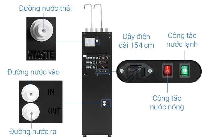 - Có 2 vòi riêng biệt cho ra 3 chế độ nước nóng - nguội - lạnh thuận tiện: