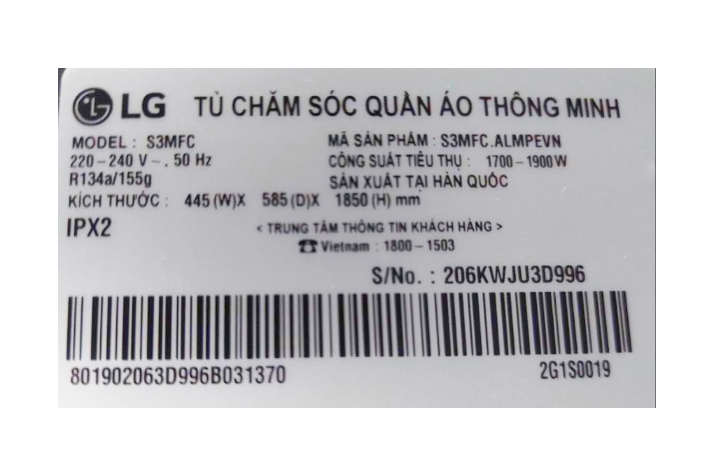 Tủ chăm sóc quần áo thông minh LG S3MFC là loại thiết bị thay thế máy giặt, chăm sóc các loại quần áo cao cấp như áo lông vũ, áo vest,... được tích hợp công nghệ giặt hơi nước True steam diệt khuẩn mạnh mẽ, chế độ hút ẩm xung quanh giữ cho không khí trong tủ và bên ngoài thông thoáng, hỗ trợ điều khiển qua ứng dụng SmartThinQ dễ dàng.