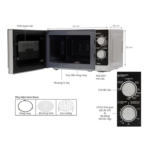 - Lò vi sóng có chức năng nấu, hâm nóng, rã đông