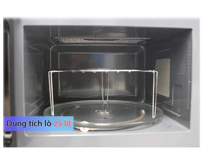 Bên trong có đĩa thủy tinh xoay tròn giúp món ăn chín đều, ngon. Đèn chiếu sáng giúp bạn theo dõi món ăn thuận tiện mà không cần mở cửa lò ra.