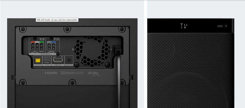 Các loa sau nối dây và một loa subwoofer bên ngoài