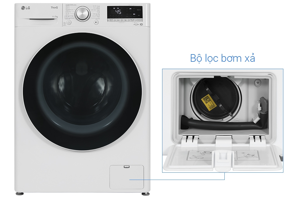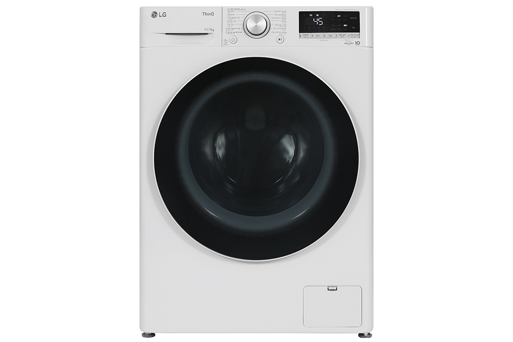 - Máy giặt LG Inverter này có thể đáp ứng khối lượng giặt 11 kg hoặc sấy 7 kg, phù hợp cho gia đình trên 7 người.