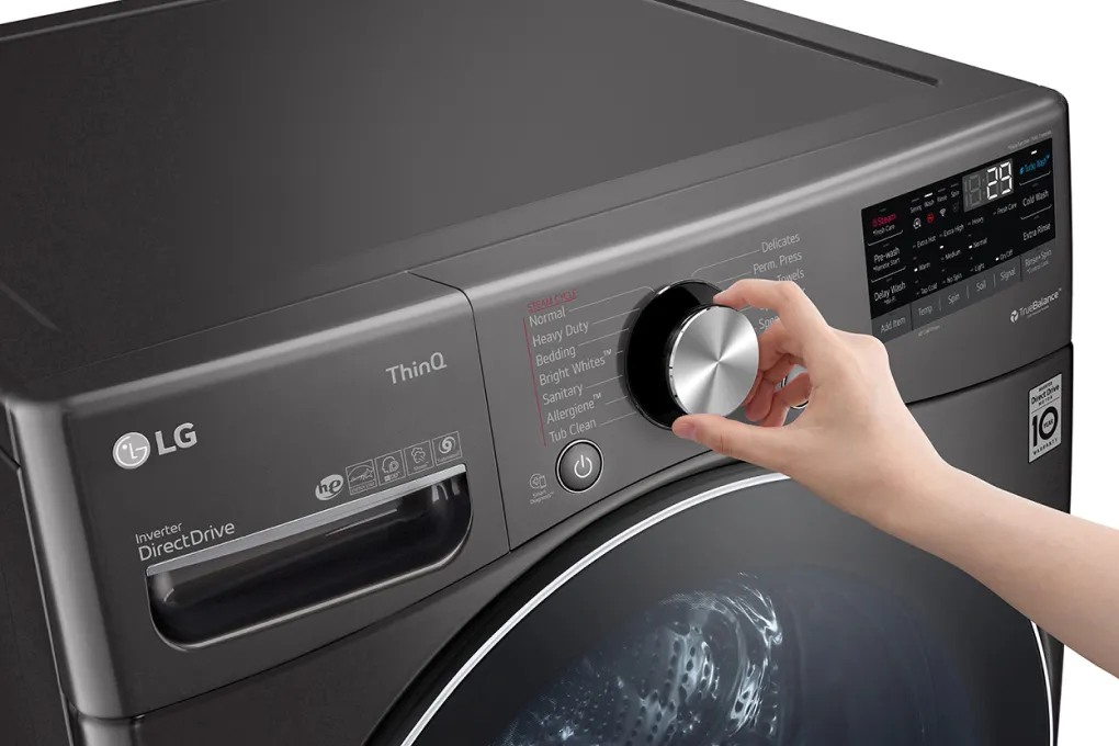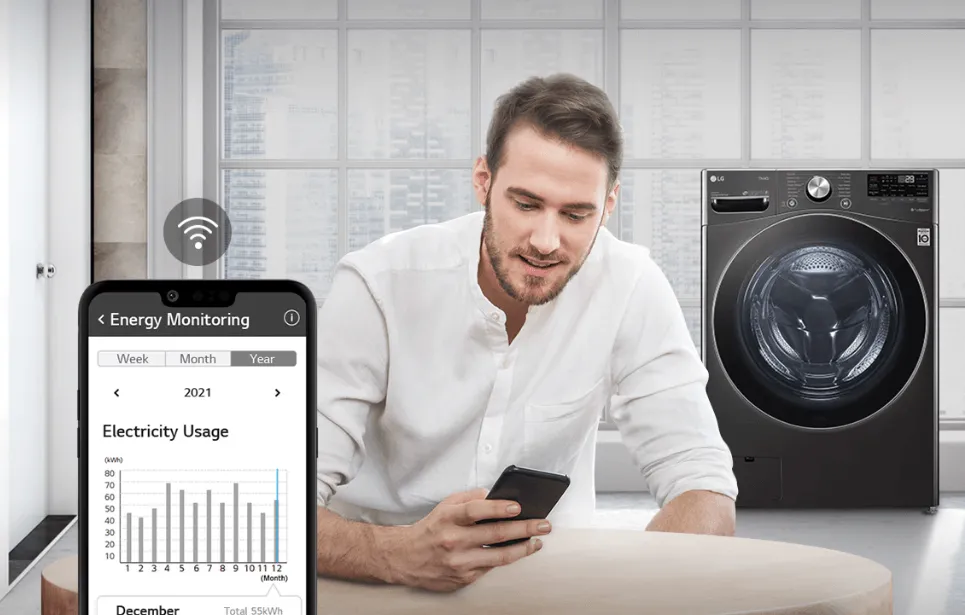 Ngoài việc sử dụng bảng điều khiển, bạn còn có thể điều khiển máy giặt sấy LG Inverter F2721HVRB bằng điện thoại thông minh mọi lúc, mọi nơi thông qua ứng dụng LG ThinQ™. Ngoài ra, với ứng dụng LG ThinQ, bạn còn có thể kiểm tra trạng thái máy giặt, tải về chu trình giặt mới hoặc theo dõi tình trạng sử dụng điện năng.