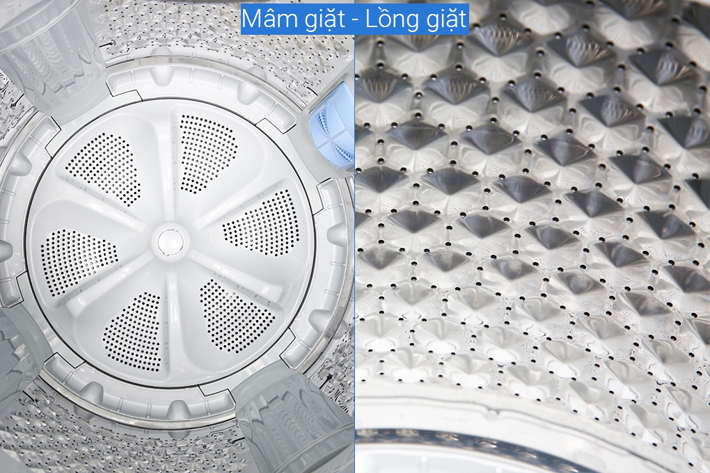 Lồng giặt của chiếc máy giặt Toshiba này được thiết kế các gờ nổi cong mềm mại có hình tương tự như những ngôi sao pha lê. Những chiếc gờ nổi cong mềm mại này tựa như chiếc ván giặt giúp bạn dễ dàng giặt sạch quần áo và bảo vệ quần áo trong quá trình giặt.