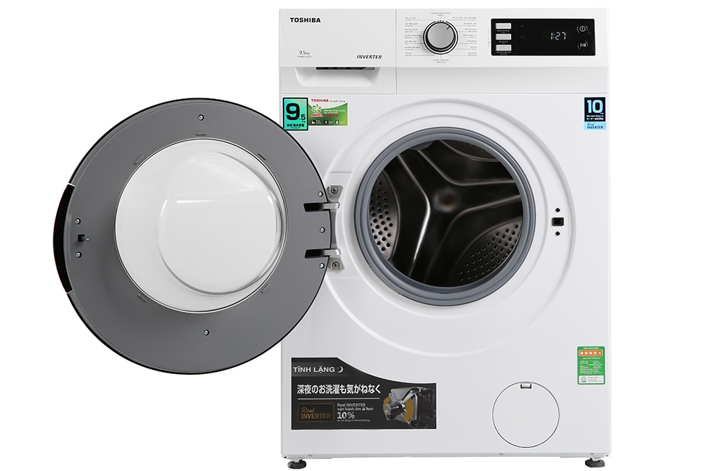 Bên cạnh đó, máy giặt Toshiba Inverter TW-BK105S2V(WS) sở hữu khối lượng giặt đến 9.5 kg, thích hợp cho những hộ gia đình có trên 6 người, hoặc ít hơn nhưng lại có nhu cầu làm sạch quần áo nhiều trong mỗi lần giặt.