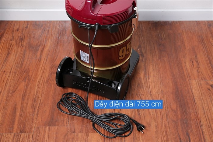 - Máy hút bụi công nghiệp có chiều dài dây điện 7.55m di chuyển linh hoạt ở các vị trí xa ổ cắm cố định, tiện lợi cho quá trình vệ sinh.