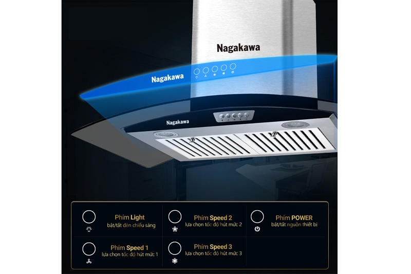 Hệ thống lọc than hoạt tính cao cấp Nagakawa hấp thu cặn bẩn, khói bếp,... đồng thời khử mùi hoàn toàn theo tiêu chuẩn của máy lọc không khí, giúp không gian bếp luôn thoáng mát, trong lành để mỗi phút giây của gia đình bạn trong bếp đều thư thái, dễ chịu.