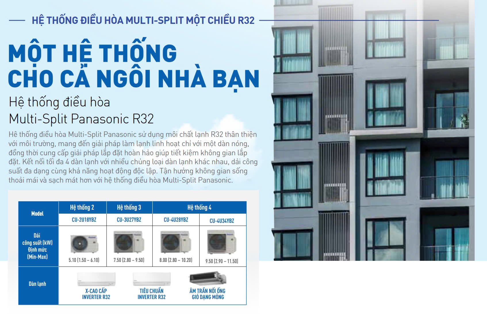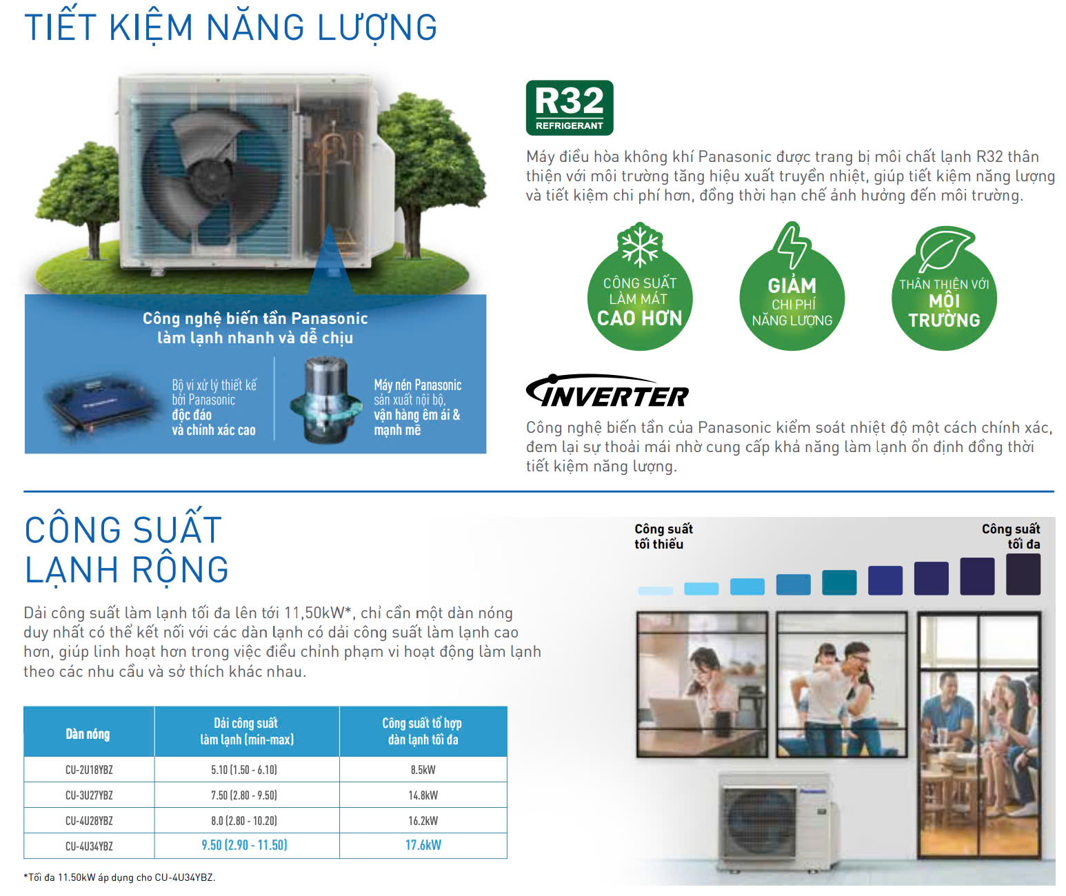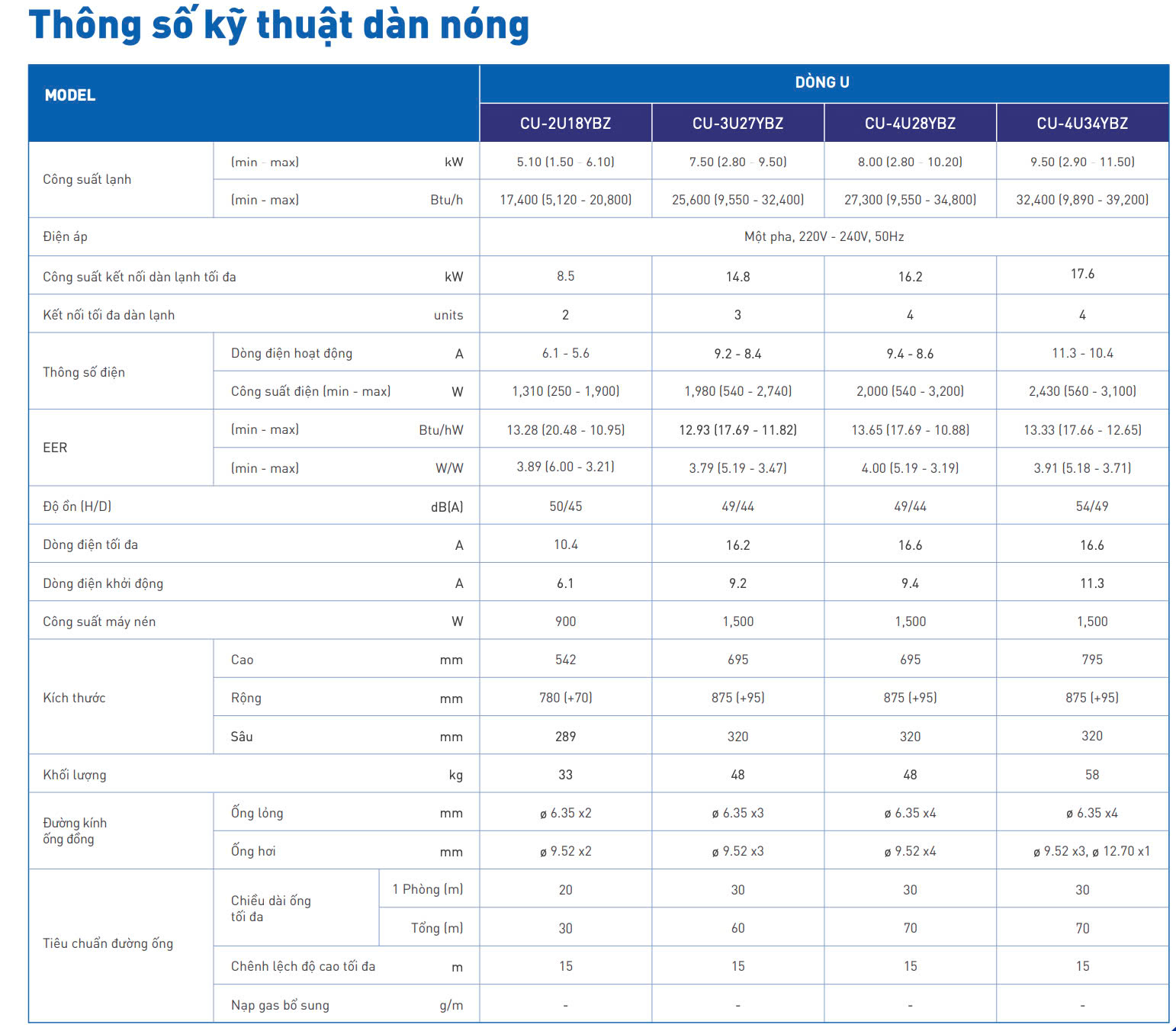 Dàn nóng CU-3U27YBZ: Công suất 3.0 HP, kết nối tối đa 4 dàn lạnh, thiết kế nhỏ gọn, tiết kiệm điện năng.