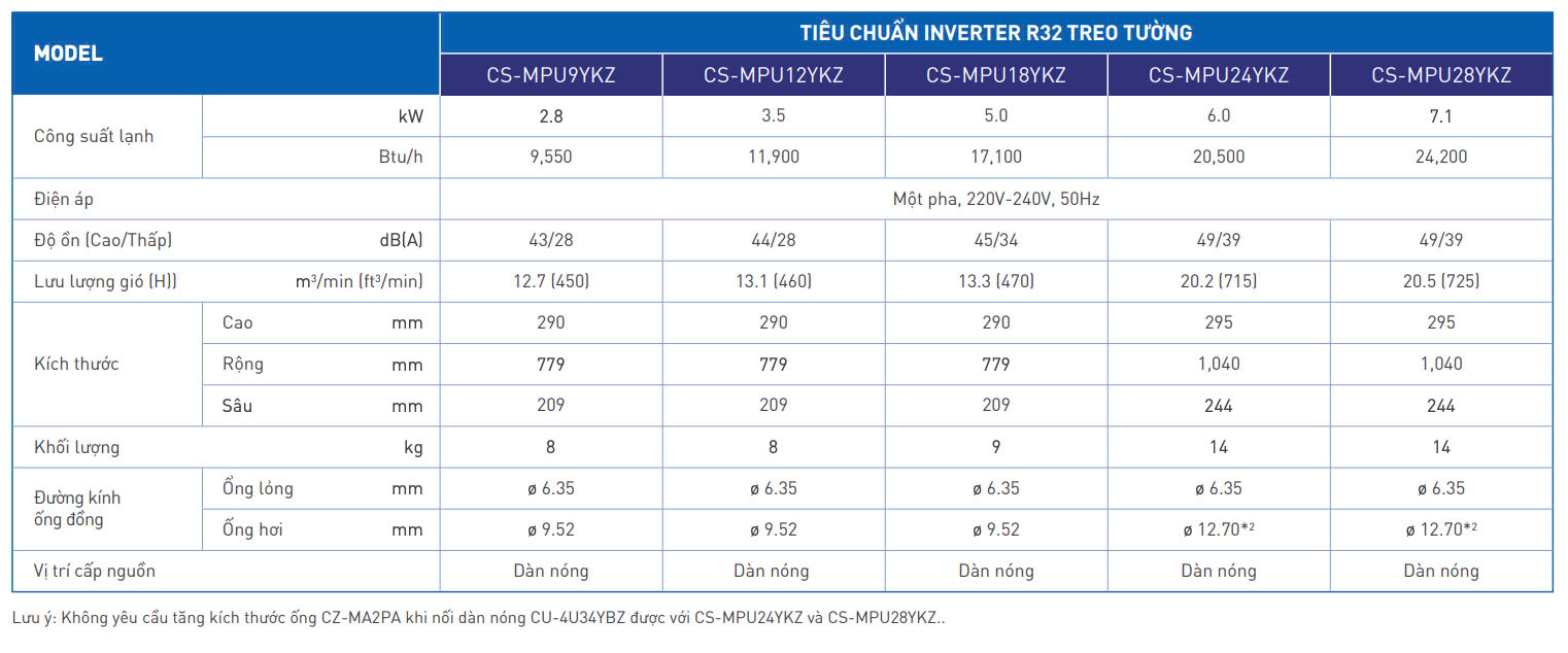 ✅ CS-MPU24YKZ – 2.5 HP – Treo tường – Xuất xứ: Malaysia -