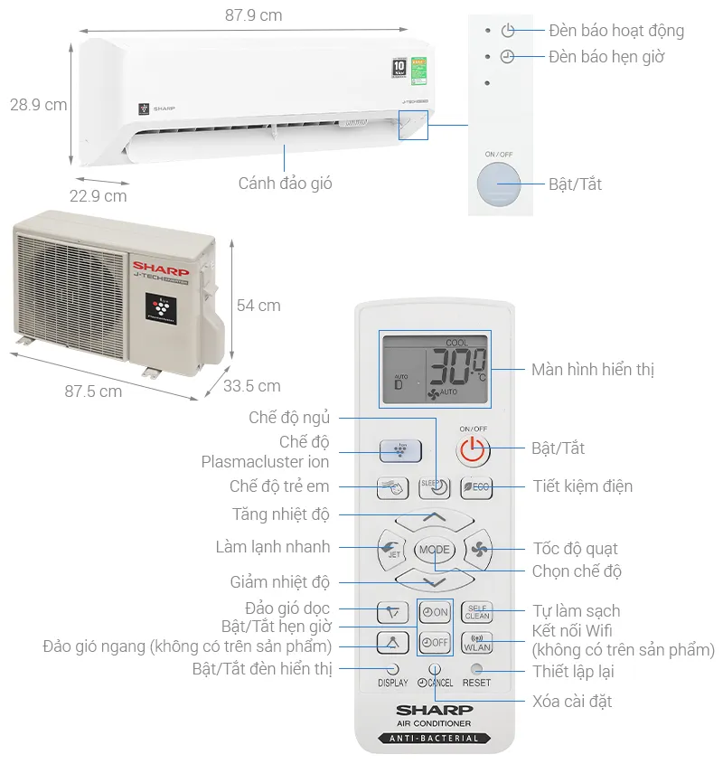 - Công nghệ lọc không khí Plasmacluster ion – công nghệ độc quyền giúp loại bỏ nấm mốc, vi khuẩn, virus và mùi hôi trong không khí.
