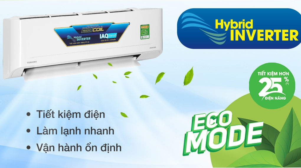 Máy lạnh Toshiba Inverter 1.5 HP RAS-H13C3KCVG-V kết hợp công nghệ biến tần Hybrid Inverter, máy nén với động cơ DC Twin Rotary với trục quay đôi cung cấp hiệu suất làm lạnh cao, vận hành êm ái, tiết kiệm năng lượng lên đến 60%. Chế độ ECO giúp tiết kiệm điện năng đến 25%, giúp làm lạnh hiệu quả và thân thiện với môi trường.