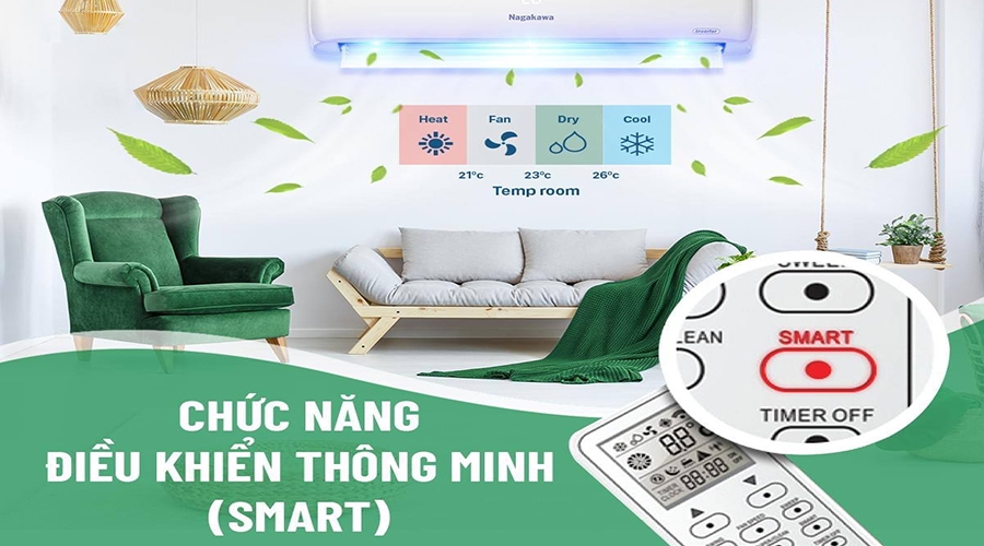 Chế độ Smart Mode giúp điều hòa tự động nhận diện nhiệt độ phòng và điều chỉnh chế độ phù hợp: