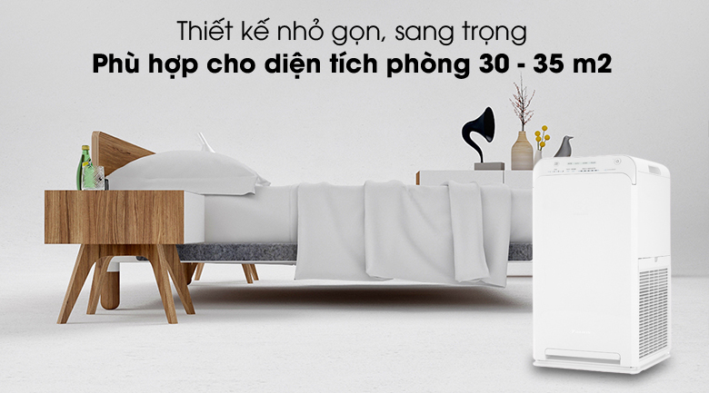 Máy lọc không khí Daikin với thiết kế gọn gàng, màu sắc trang nhã, tăng tính thẩm mỹ cho không gian nơi để