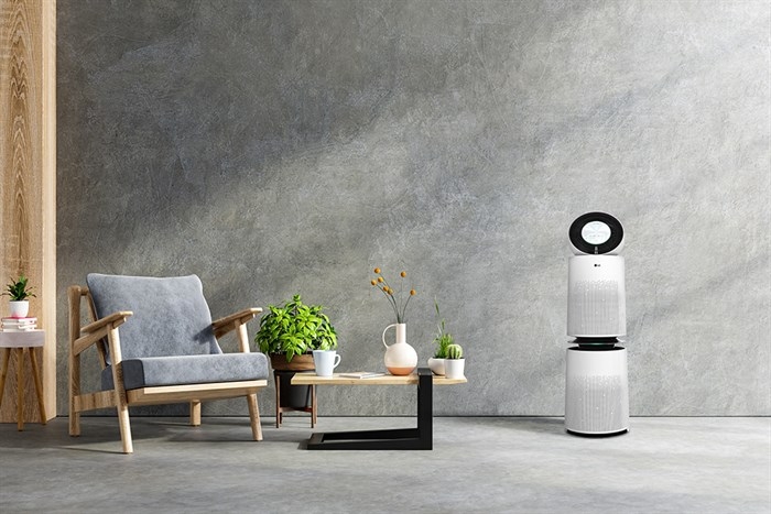 - Mẫu máy lọc không khí LG này lọc được 99.999% bụi siêu mịn PM 0.01 qua màng lọc HEPA.