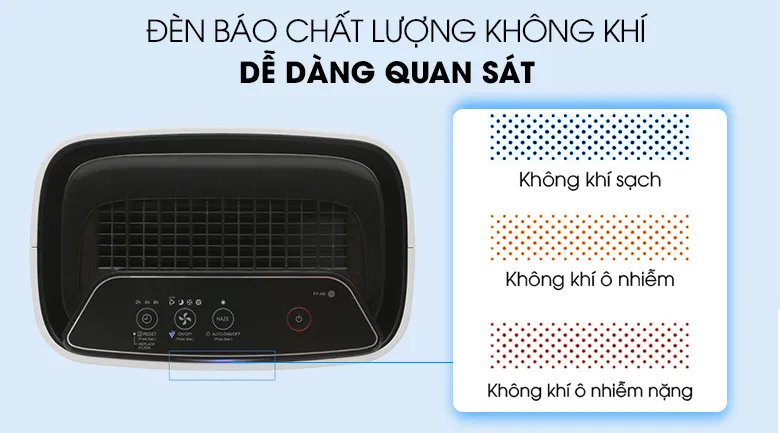 Cho bạn theo dõi, chỉnh chế độ lọc không khí tiện lợi hơn, trong đó đèn xanh dương biểu thị không khí sạch, đèn màu cam là không khí ô nhiễm và đèn màu đỏ là không khí ô nhiễm nặng.