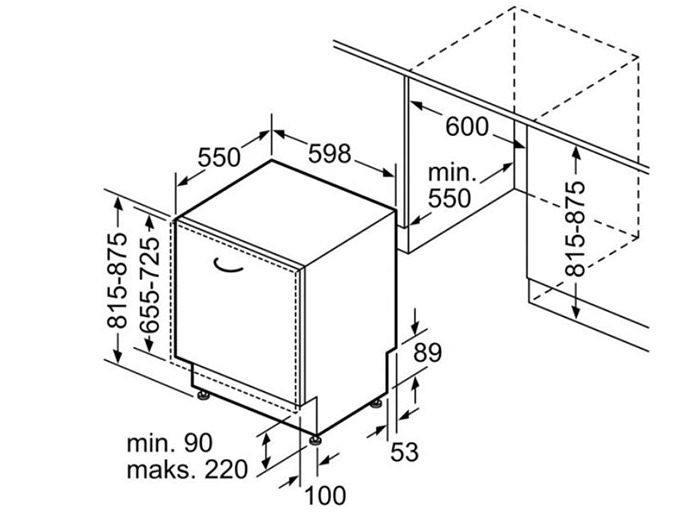 Bản thiết kế lắp đặt máy rửa bát âm toàn phần Bosch SMV6ZCX16E
