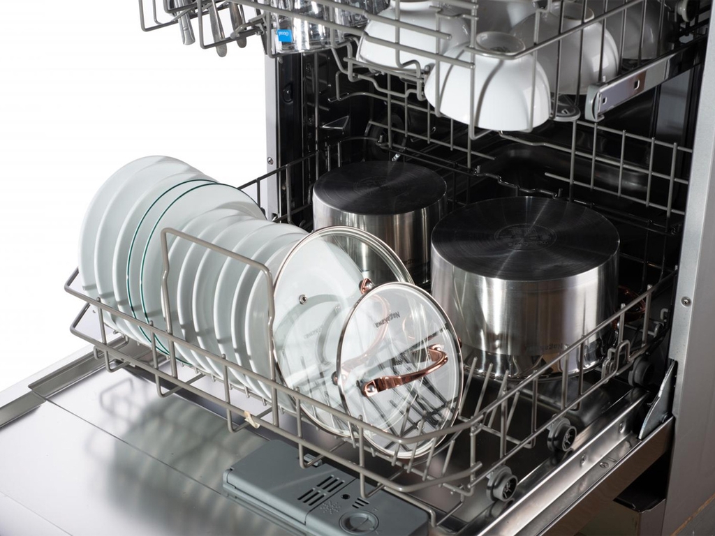 Hơn nữa, máy rửa bát có thiết kế buồng máy bằng thép không gỉ, chịu được nhiệt độ cao và không tạo ra chất độc hại trong quá trình máy rửa bát hoạt động. Với 3 tầng giá xếp đồ, tối ưu hóa việc sử dụng không gian một cách tiện lợi. Điều này cho phép bạn xếp được nhiều bát đĩa hơn, đồng thời vẫn đảm bảo chất lượng và hiệu quả trong quá trình rửa. Các tầng giá xếp đồ linh hoạt có thể điều chỉnh khoảng cách ở tầng giữa khoảng 5cm, giúp tạo thêm không gian phù hợp với nhiều dụng cụ nấu ăn như nồi cao, đĩa rộng, hoặc chảo sâu, kích thước quá khổ... Điều này làm cho máy rửa bát trở nên đa năng và thích hợp cho nhiều loại bát đĩa và dụng cụ nấu ăn khác nhau, mang lại sự tiện lợi cho việc sử dụng hàng ngày.