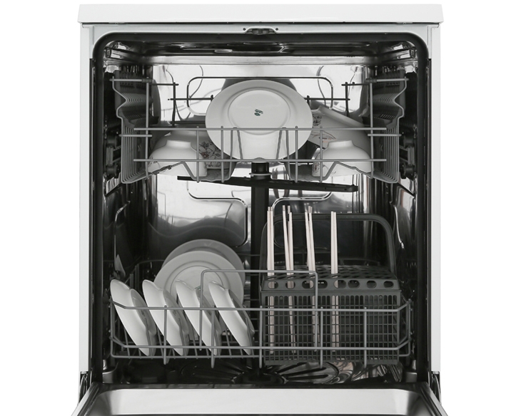 – Máy rửa chén này được thiết kế với 2 khay rửa: khay trên, khay dưới và giỏ dựng dao muỗng đũa.