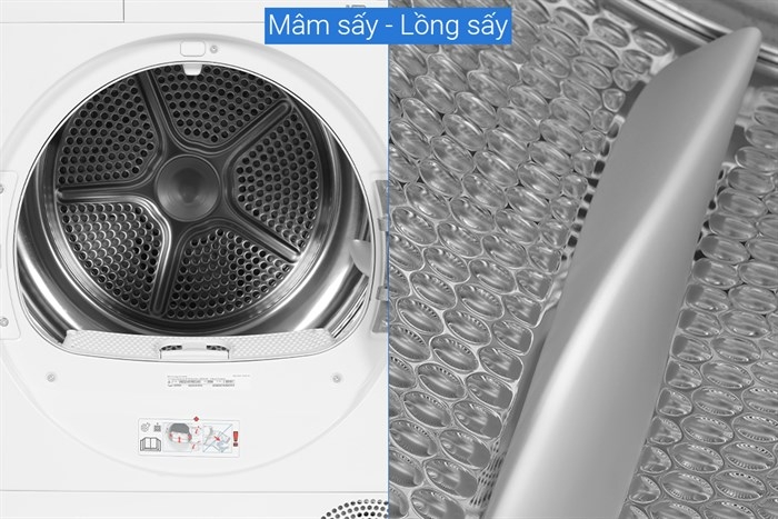Công nghệ sấy bơm nhiệt: Sấy khô quần áo ở nhiệt độ thấp, giúp tiết kiệm điện năng, bảo vệ sợi vải và màu sắc quần áo, đồng thời giảm thiểu nguy cơ cháy nổ.