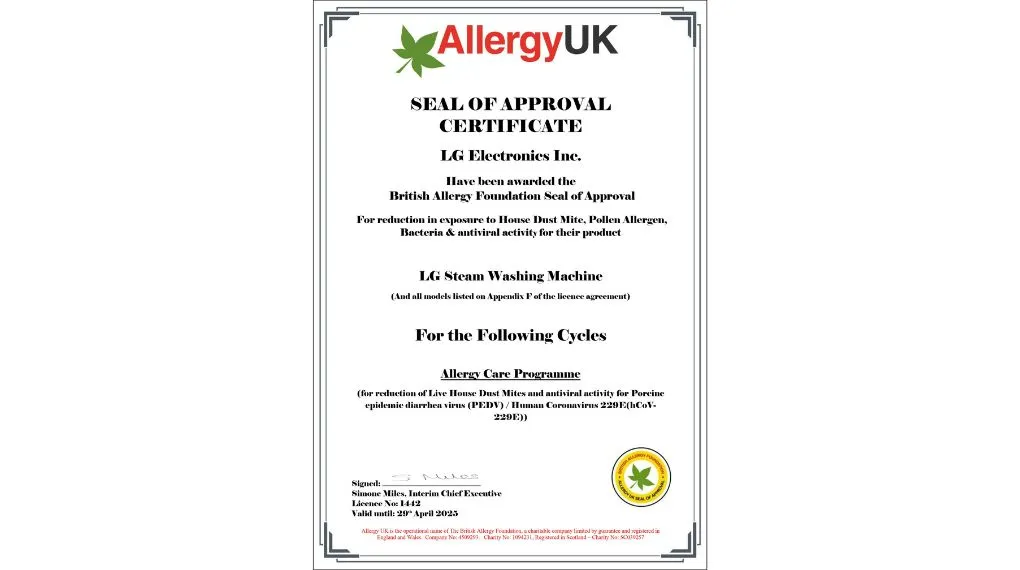 *Chu trình Chăm sóc dị ứng được chứng nhận từ BAF (Hiệp hội Dị ứng Anh Quốc) diệt 99.9% mạt bụi sống trong nhà.