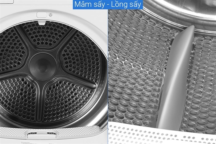 - Cảm biến Duo-Tronic bên trong giúp kiểm tra độ ẩm nhằm tự động điều chỉnh thời gian sấy thích hợp