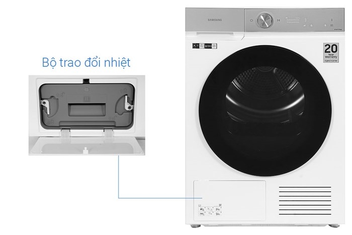 Thiết kế Bespoke tinh tế, lắp đặt linh hoạt: Máy sấy lồng ngang - cửa ngang. Kiểu dáng hiện đại, đường nét tinh tế, có thể lắp đặt độc lập hoặc âm tủ, hài hòa với mọi không gian nội thất.