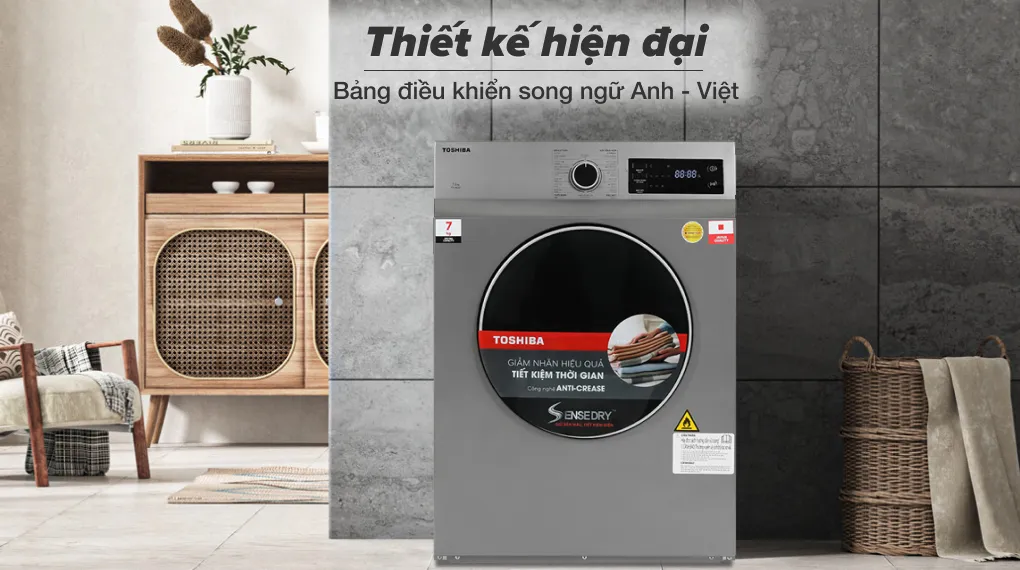 Máy sấy thông hơi 7 kg Toshiba TD-H80SEV(SK) có khối lượng sấy 7 kg sấy khoảng 10 - 12 bộ quần áo/lần sấy, có nhiều chương trình sấy phù hợp với nhu cầu sấy khác nhau, sấy nhanh quần áo trong 20 phút với lượng đồ ít.