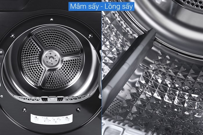 Công nghệ sấy AirWash khử mùi, diệt khuẩn 99.9%: Với công nghệ sấy AirWash, luồng không khí được làm nóng do đi qua bộ tản nhiệt, sau đó thổi vào lồng sấy để loại bỏ các vi khuẩn gây mùi, giữ cho áo quần và chăn ga luôn sạch khuẩn, bảo vệ sức khỏe của gia đình một cách tốt nhất.