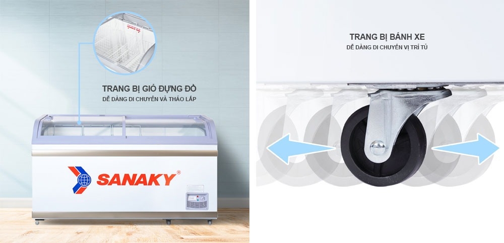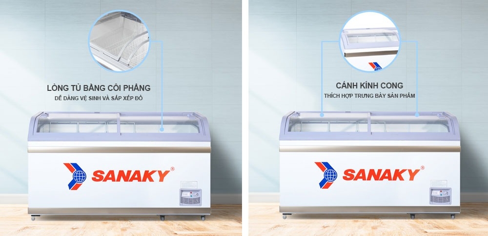 – Loại tủ đông nắp kính Sanaky 1 ngăn đông 2 cánh lùa.