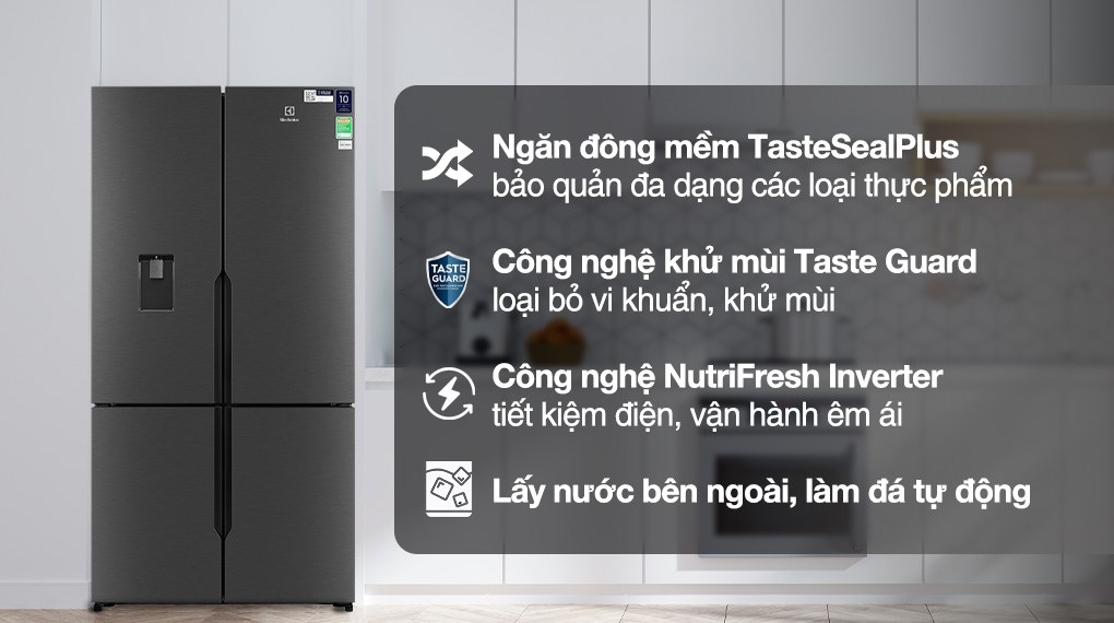 - Tủ lạnh Electrolux EQE5660A-B có khả năng làm đá tự động.
