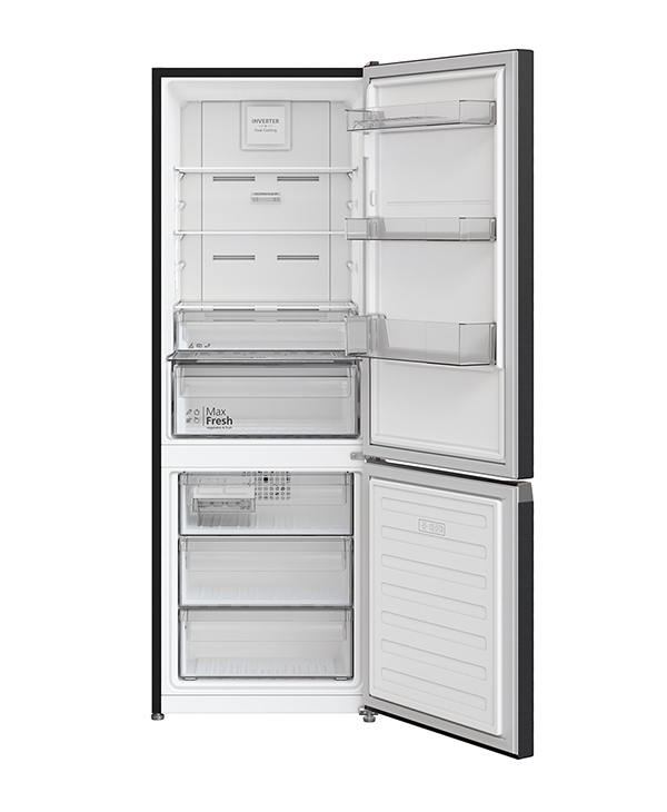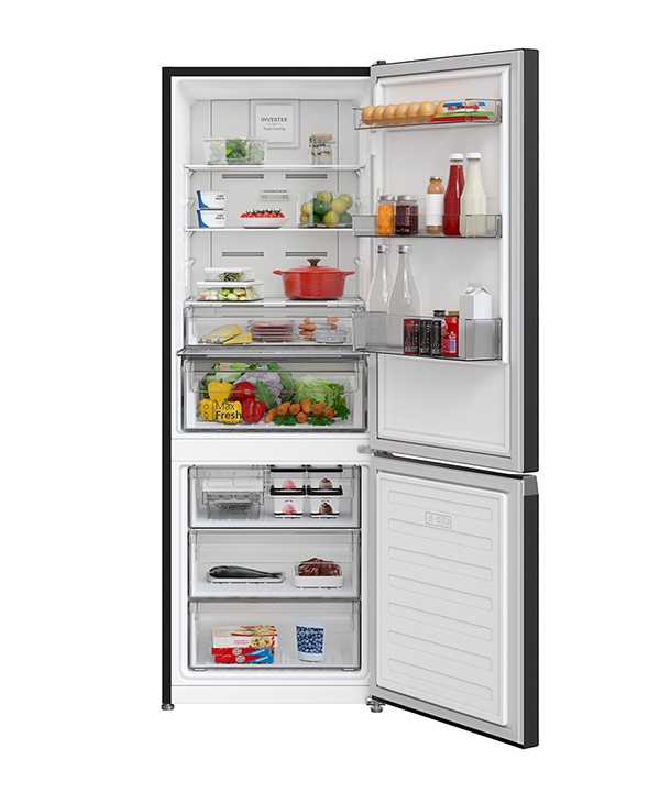 - Ngăn lạnh dung tích 233 lít: có các ngăn cửa có thể lưu trữ nhiều loại chai lọ đa dạng kích cỡ như bình nước, hộp sữa/nước, các lọ gia vị,… Ngăn rau củ tiện dụng và bảo quản tốt với công nghệ Max Fresh