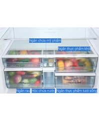 Phía trong ngăn lạnh được trang bị các kệ cùng khay kính cường lực nhằm tăng không gian lưu trữ thực phẩm cũng như dễ dàng hơn trong việc phân loại thực phẩm theo nhu cầu.
