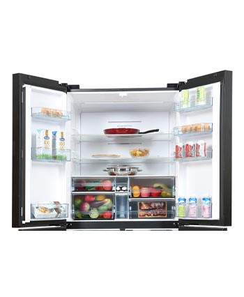 Các kệ trang bị bên trong và hộc ngăn kéo giúp sắp xếp thực phẩm dễ dàng, tránh lẫn mùi. Cánh cửa tủ cũng có các kệ đựng đồ tiện lợi nhằm tăng không gian lưu trữ.
