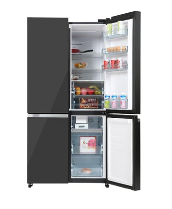 Đây là mẫu tủ lạnh cỡ lớn Multi Door, chất liệu cửa tủ bằng kính cường lực có độ bền cao.