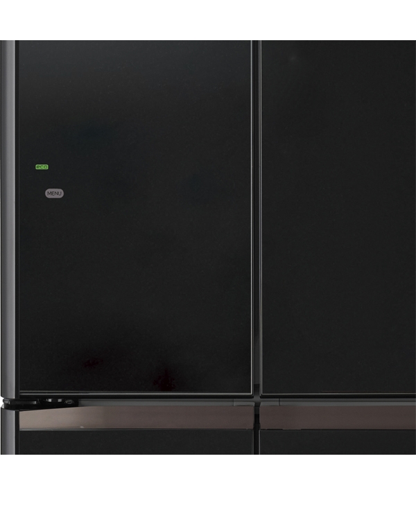 Cửa tủ chất liệu mặt kính sáng bóng kết hợp tông màu đen thời thượng, cho tủ lạnh dễ dàng hòa nhập vào môi trường xung quanh, tạo điểm nhấn cho căn bếp gia đình thêm đẳng cấp, sang trọng.